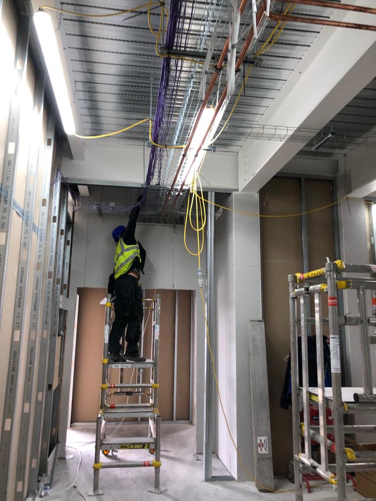 - Electrical Installation: LV distribution from external supplies, power distribution, specialist and general lighting, IT/data infrastructure, access control, fire alarm upgrades, security/CCTV integration, and emergency systems.